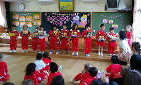 5日は月組さんが近くの小学校に交流会に出かけました。