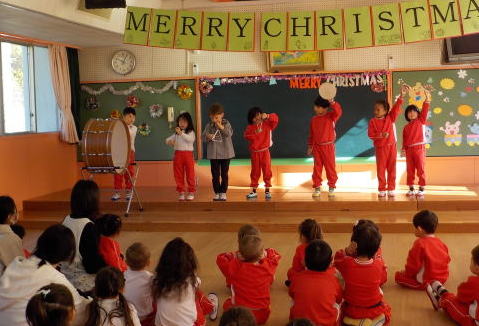 月組さんはクリスマスソングの歌と楽器遊びを見せてくれました。