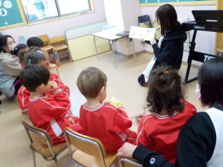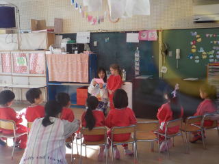 花組さんは、絵本に合わせて表現遊びをする様子を見せてくれました。