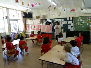 午後の外遊び後は、ピアニカをしたり、避難についての話し合いをしました。