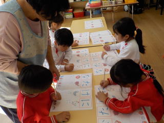 月組さんは、ひらがなの練習をしました。