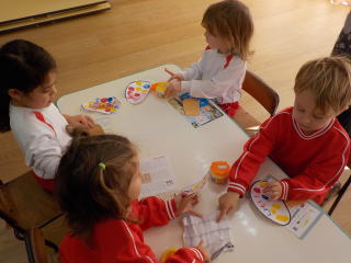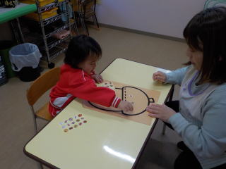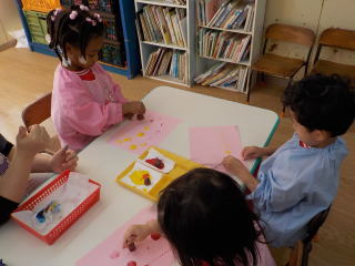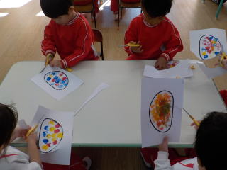 星組さんは、どんぐりの帽子にシールを貼ったり、顔を描いたりしました。