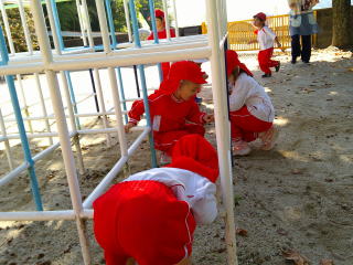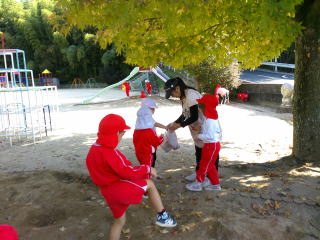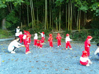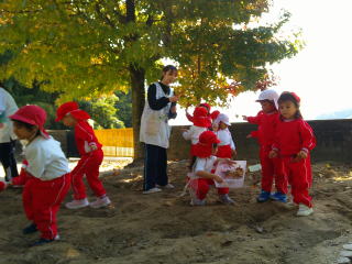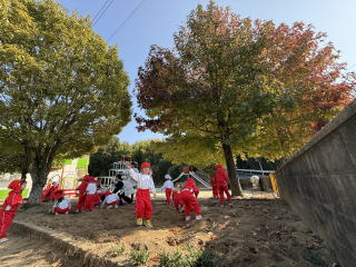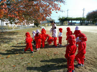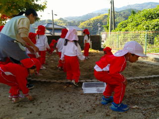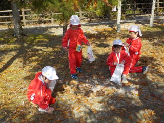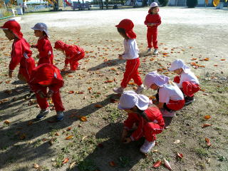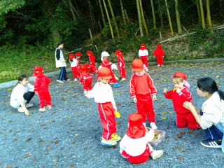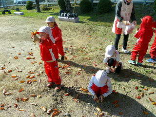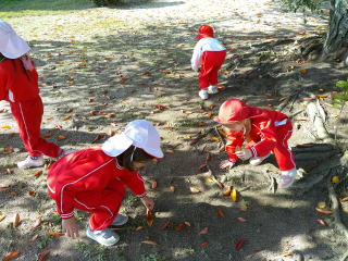 落葉や、どんぐりを集めようと、子ども達は芋畑の周辺できれいな物を集めていきました。