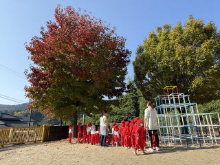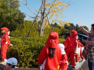 今週に入り、急に色づいてきた園庭の木々の近くまで行き、