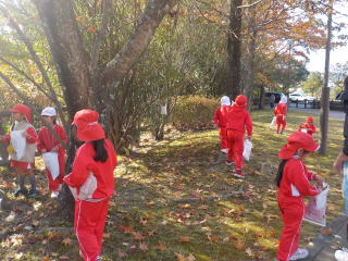 花組さんは園庭で落葉拾いとどんぐり集めをしました。