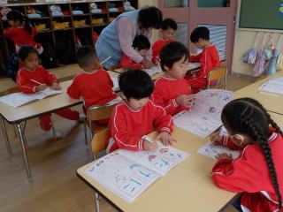 月組さんは、ひらがなの練習をしました。
