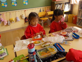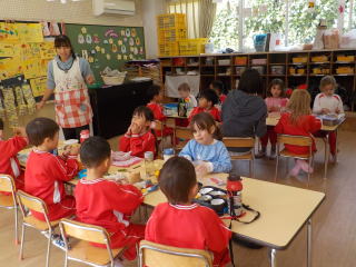 弁当後に、幼稚園で掘ったお芋をつかった焼き芋をいただきました。