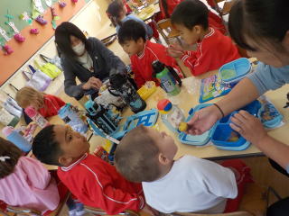 雪組さんは、誕生児へのプレゼント作りをしました。