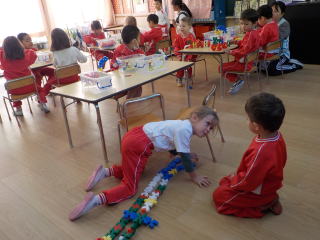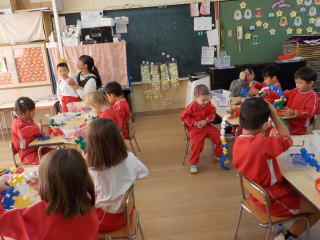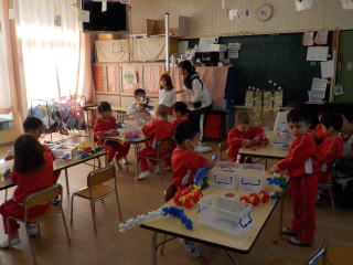 一人ずつ身長と体重を測り、子ども達はブロックをして遊んでいました。