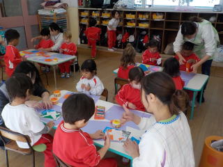 2枚ありましたが子ども達は糊付けを頑張り、お絵かきを楽しんでいました。