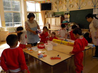 今日から異年齢でのふれあい保育(お店屋さんごっこ)が始まりました。