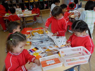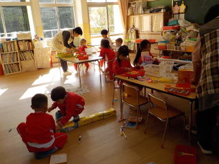 2025/11/21 ふれあい保育2日目 今日は、集まってすぐに製作を始められました。 グループごとに話し合いながら、少しずつ進めています。 同じグループのみんなで材料を選びに行ったり、 どうやって作るか話し合ったりしながらすすめています。 花組グループ 雪組グループ 月組グループ 今日は活動の様子を動画配信しました。