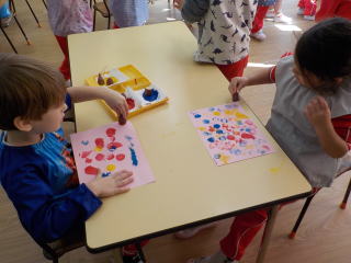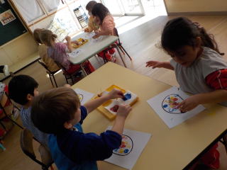 次は画用紙に好きなようにスタンプをたくさん押して楽しみました!
