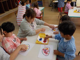 花組さんと星組さんは、いも版あそびをしました。