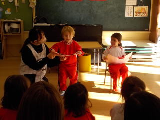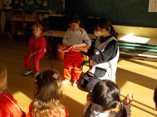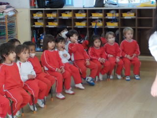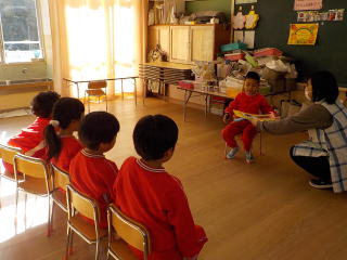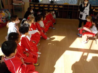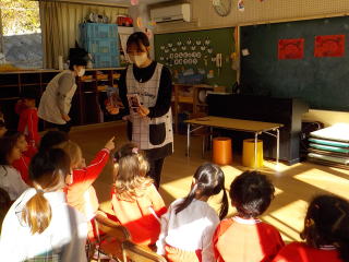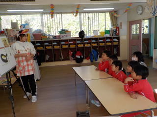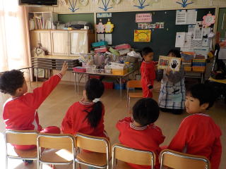 先生からの出しものは、今月担当だった先生が、クラスを回ってパネルシアターを見せてくれました。