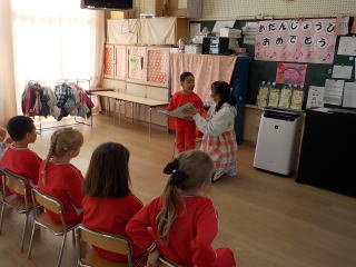 今日はお休みの子ども達が多かったこともあり、クラス単位での誕生会となりました。