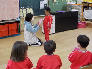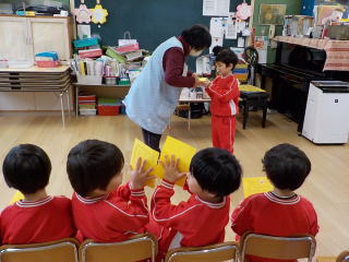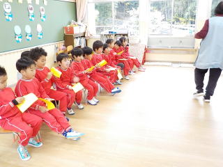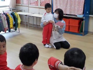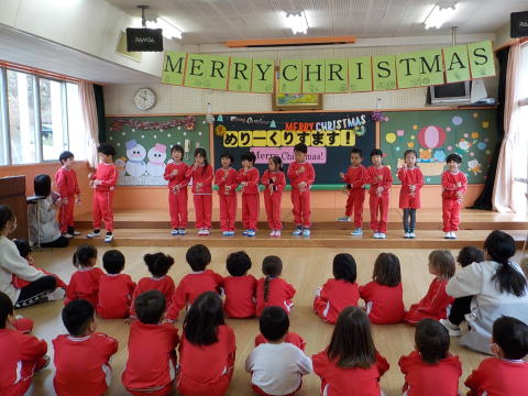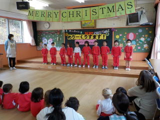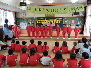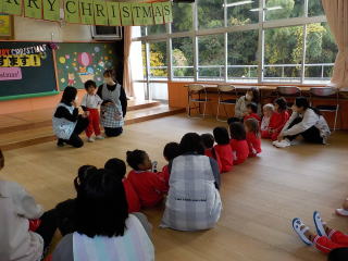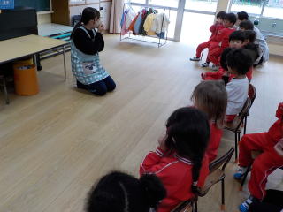 みんなで冬の歌をうたって、園長先生の話を聞きました。