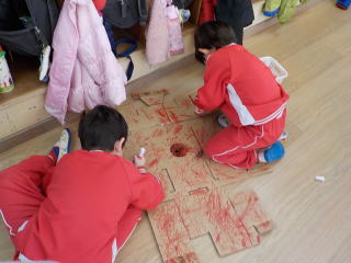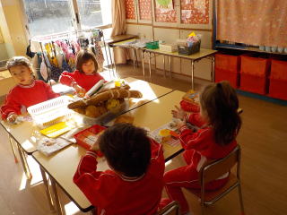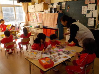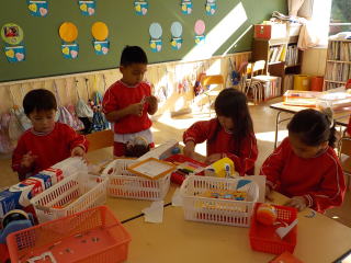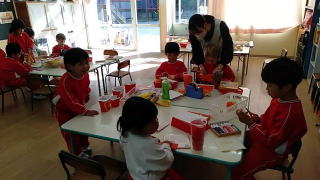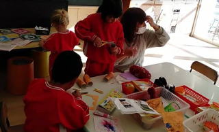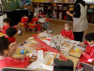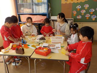 2025/12/5 ふれあい保育9日目 だんだんお店屋さん開店日が近づいてきました。 子ども達は前回のふれあい保育の活動の日の作品を見ながら、 今日はどうするか話し合い、製作を進めました。 花組グループ 雪組グループ 月組グループ