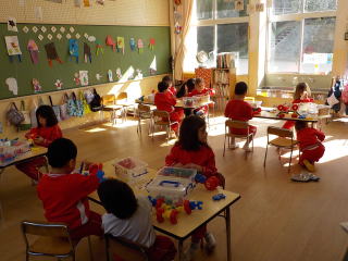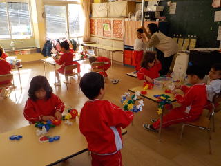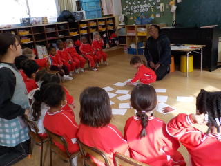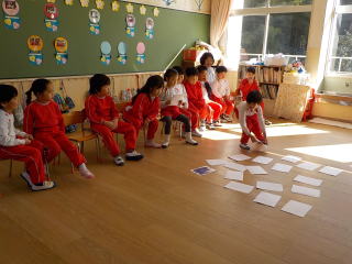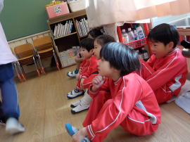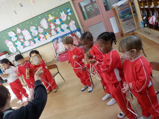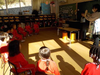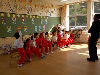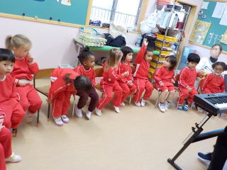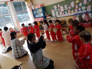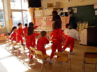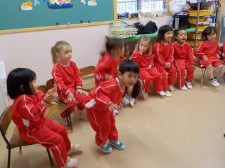 2026/1/22 星組と満3歳の子ども達は、歌を歌ったり、手遊びをしたりしました。 花組さんは歌と楽器あそびをしてから、星組から子ども達も合流し 英語であそぼうに参加しました。 雪組さんは、英語で遊ぼうに参加してから、身体測定をしました。 月組さんは表現あそびをしてから、英語で遊ぼうに参加しました。