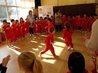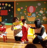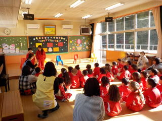 歌をうたったり、写真クイズをしたりして、担当の月組さんが一人ずつ前に案内してくれました。