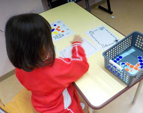 星組さんは、トイレットペーパーの芯を使ってスタンプあそびをしました。