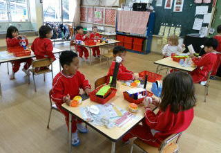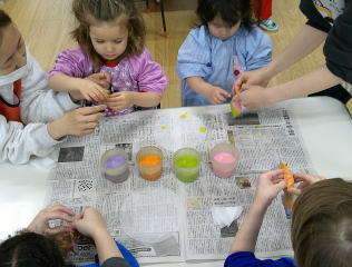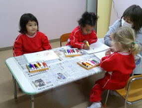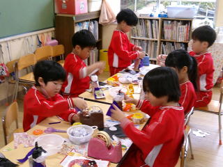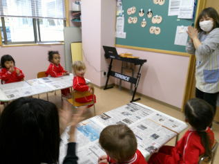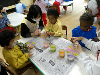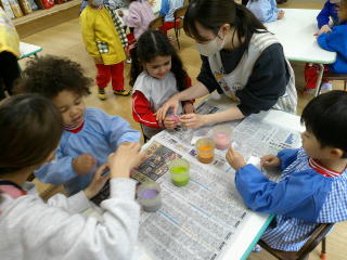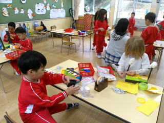 2026/2/25 星組さんは、ひな人形の顔にシールをはったり、マーカーで髪の毛を書いたりしました。 花組さんは、階段のひな人形を見に行き、部屋に戻って、ひな人形の衣装作りをしました。 好きな色を選んで、少し紙を付けてきれいな模様に仕上げました。 そして、ひな人形の顔を描きました。 雪組さんはひな人形作りの続きをしました。 月組さんはひな人形作りの続きをしました。 Top