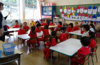 子ども達は自分のひな人形を大切に抱えて二階に飾りつけにいきました。