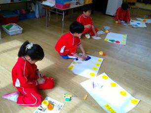 その後、出席シールを使ってシール遊びもしました。