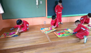 花組の子ども達は誕生児へのプレゼント作りと身体測定をしました。